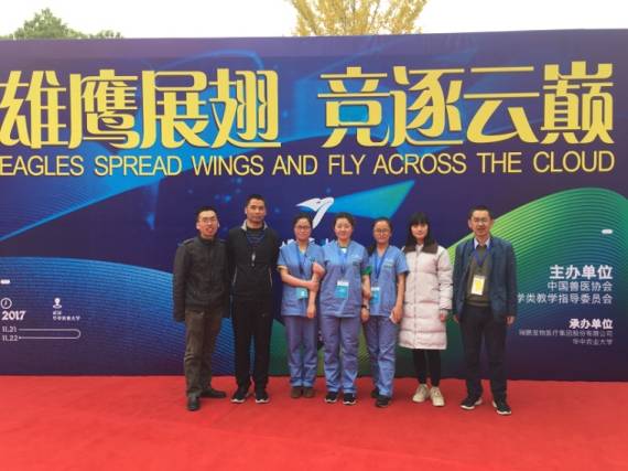 2017年11月20日至23日,由中国兽医协会、教育部高等学校动物医学类教学指导委员会主办的第三届“雄鹰杯”全国小动物医师技能大赛在武汉华中农业大学隆重举行。历经2天的激烈角逐,由我院动物医学系杨玉莹、孙天聪、杨金芳、王勤4位同学组成的0638太阳集团官网代表队首次参赛即斩获团体一等奖,卓越2014级杨玉莹同学被评为“中国兽医新星”,指导教师倪小敏、窦全林、宁鹏获得优秀指导教师一等奖。